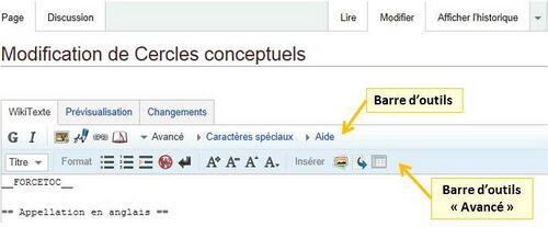 - Le bouton « Avancé », qui fait apparaître une seconde barre d’outils de mise en forme. Cette dernière permet entre autre d’appliquer des styles de titre de niveaux différents et d’obtenir des listes à puces ou numérotées.