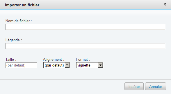 Seules les images téléversées au préalable sur le serveur de ce wiki peuvent être intégrées dans une page de celui-ci.