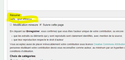Il est utile de remplir la boîte "Résumé" pour indiquer la nature de votre modification, qu'elle soit majeure ou mineure.