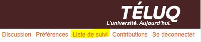La Liste de suivi affiche des pages que vous avez spécifiquement sélectionnées et dont vous voulez savoir quand et par qui elles ont été modifiées. Elle apparaît dans le menu supérieur de Wiki-TEDia.