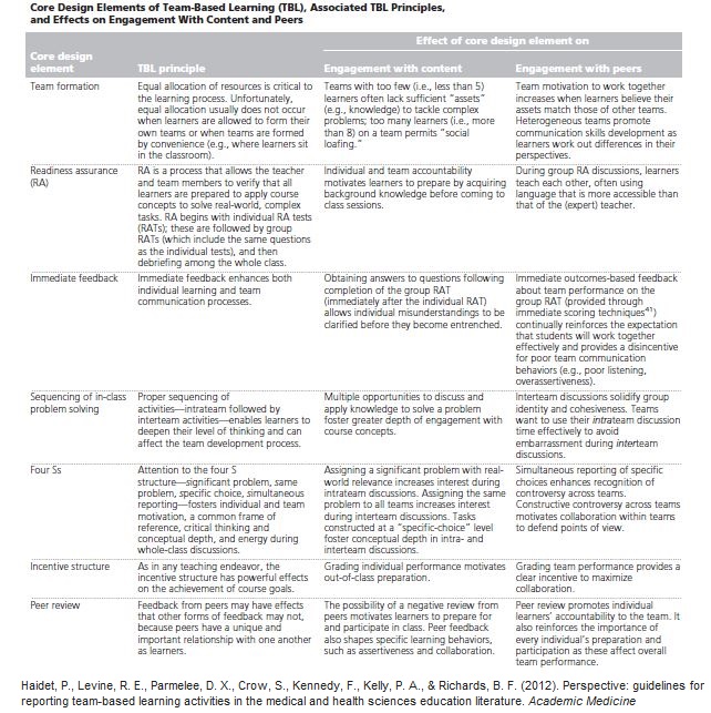 Parmelee, D. X. (2010). Team-based learning: moving forward in curriculum innovation: a commentary. Medical teacher, 32(2), 105-107.
