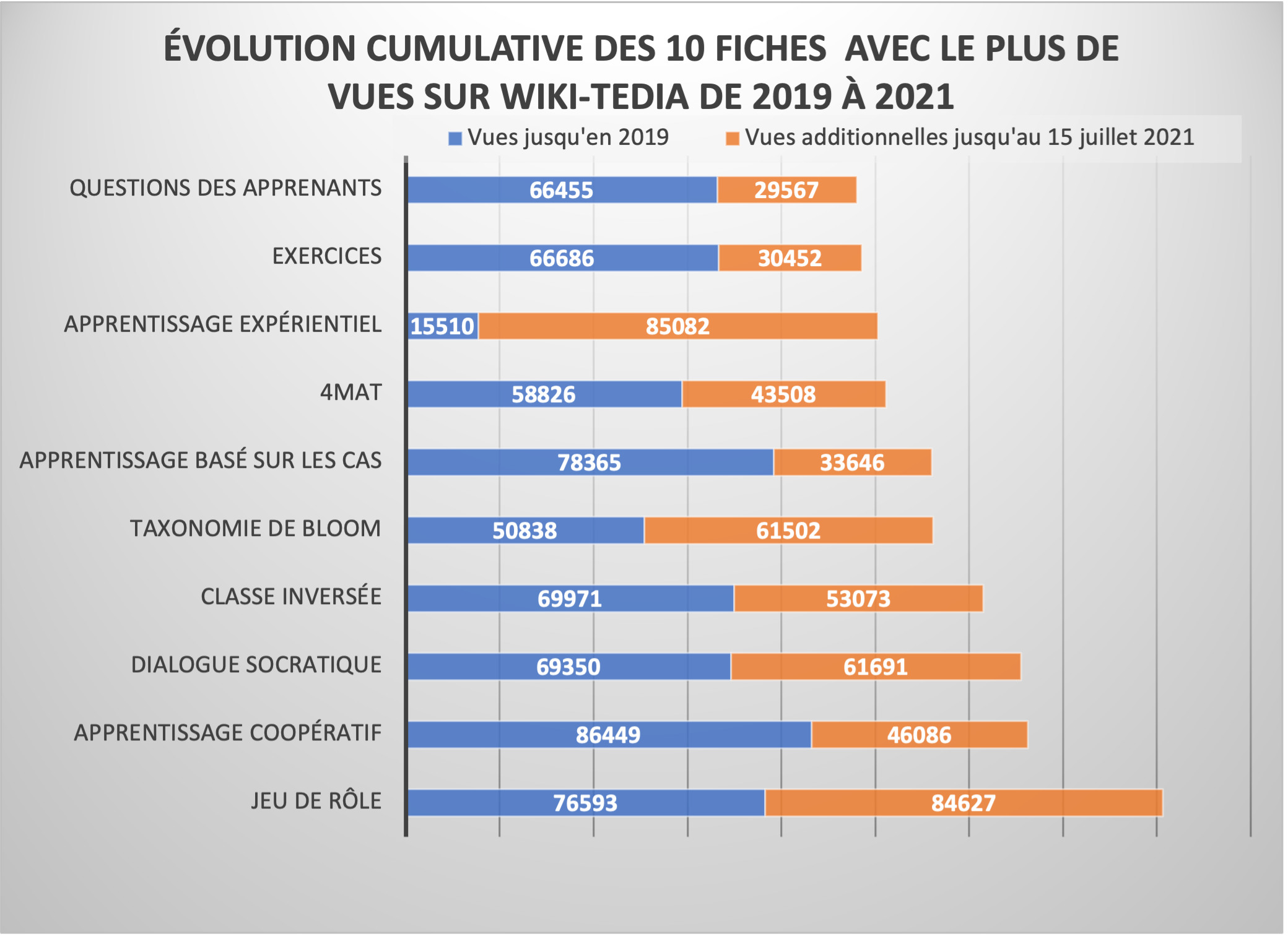 Évolution des visites des fiches de stratégies de 2019 à juillet 2021 sur WikiTEDia (Top10)