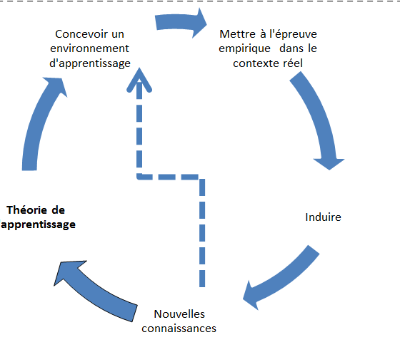 La démarche scientifique mise en œuvre par des chercheurs en Learning sciences, est une démarche hypothético-inductive. Elle consiste à prendre comme point de départ une théorie d’apprentissage et à l’utiliser comme « hypothèse » de travail permettant de concevoir un environnement d’apprentissage. Dans ce sens, il s’agit d’une démarche « guidée par la théorie » (theory-driven). L’expérimentation ultérieure de cet environnement dans un contexte réel vise deux objectifs : développer une solution éducative spécifique (c’est l’environnement d’apprentissage en question) et, en même temps, de développer des connaissances plus générales, permettant d’enrichir ou de remanier la théorie d’apprentissage qui a servi du point de départ à la conception.